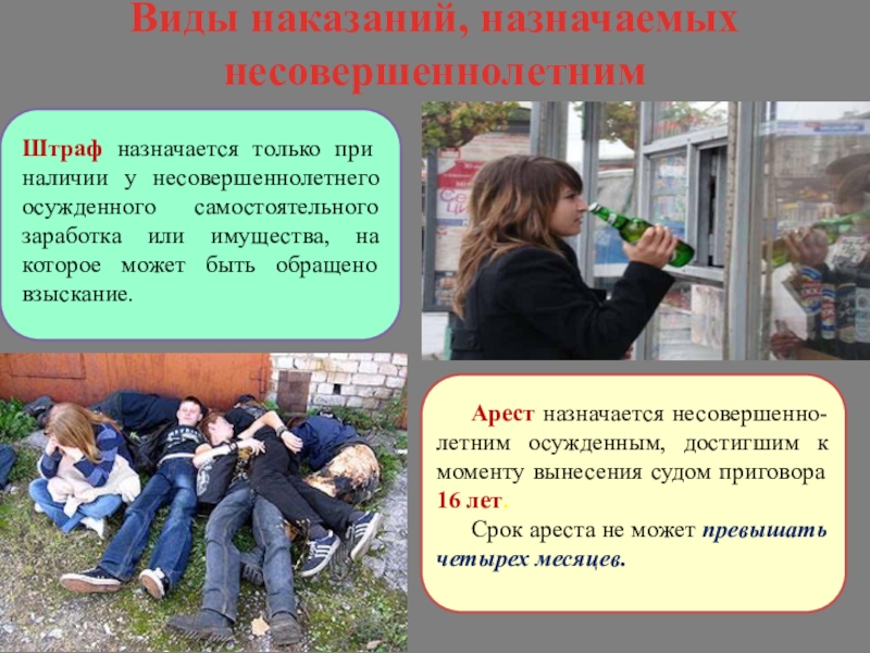 Арест назначается несовершенно-летним осужденным, достигшим к моменту вынесения судом приговора 16 лет.