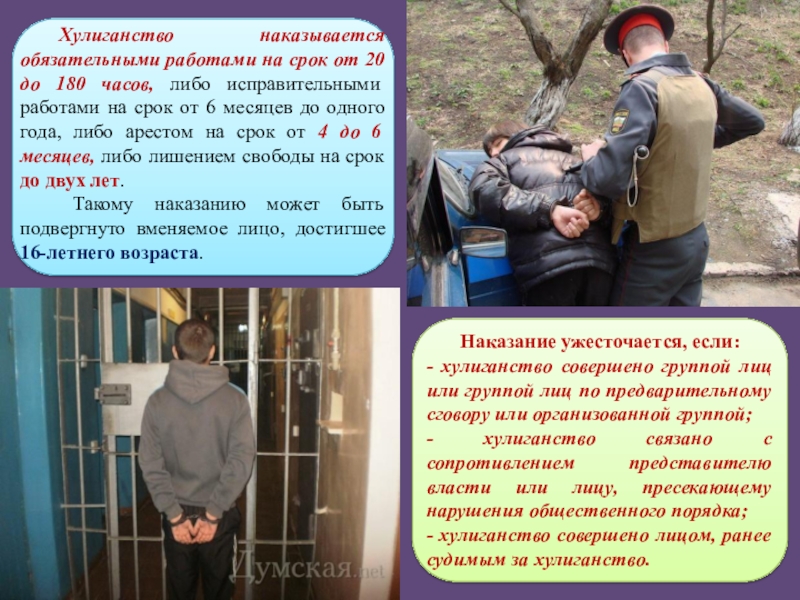 - хулиганство связано с сопротивлением представителю власти или лицу, пресекающему нарушения общественного порядка;