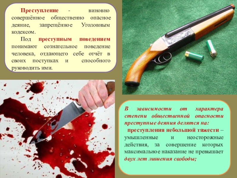 преступления небольшой тяжести – умышленные и неосторожные действия, за совершение которых максимальное наказание не превышает двух лет лишения свободы;