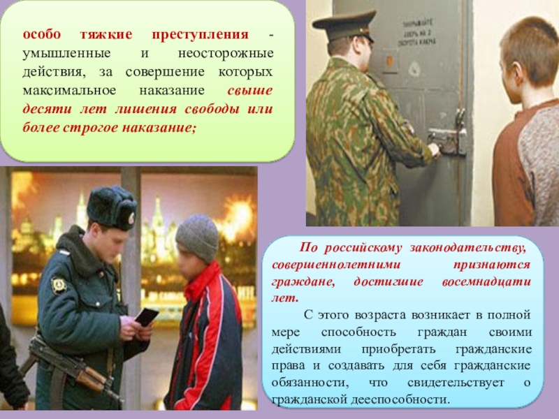 В случае совершения преступления категория "несовершеннолетний" присваивается лицам в возрасте от 16 до 18 лет, а по некоторым преступлениям - от 14 до 18 лет.