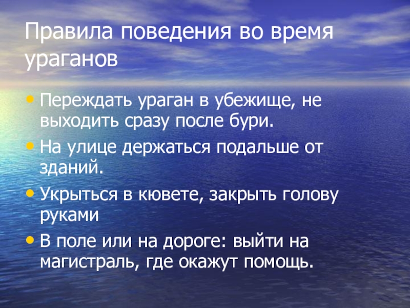 Слайд 9Правила поведения во время ураганов