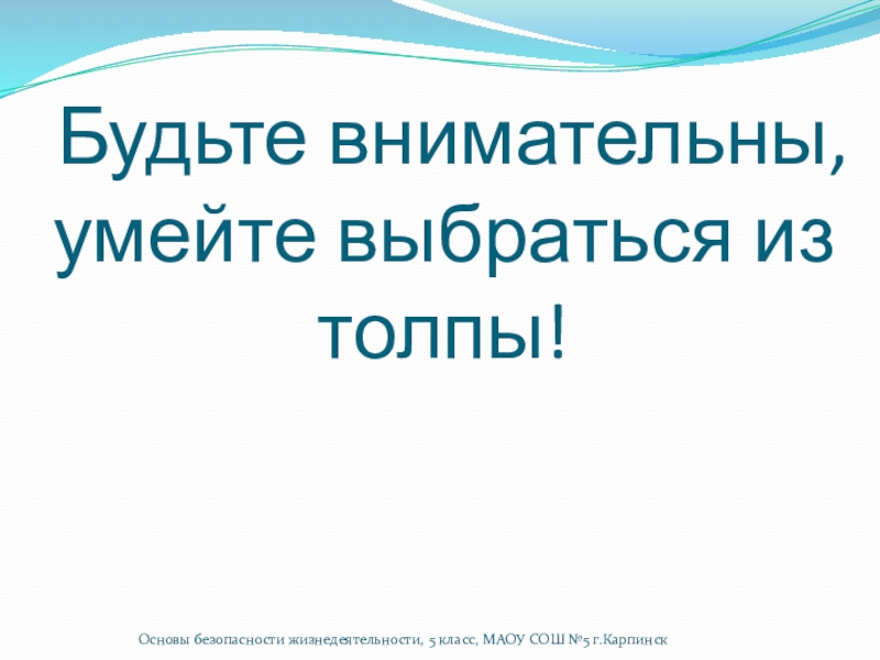 Будьте внимательны, умейте выбраться из толпы!Основы безопасности жизнедеятельности, 5 класс, МАОУ СОШ №5 г.Карпинск
