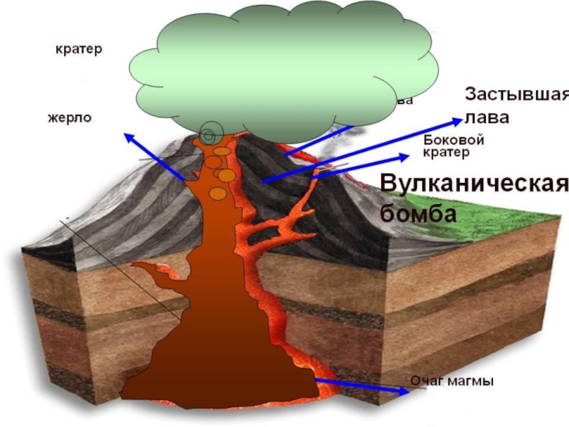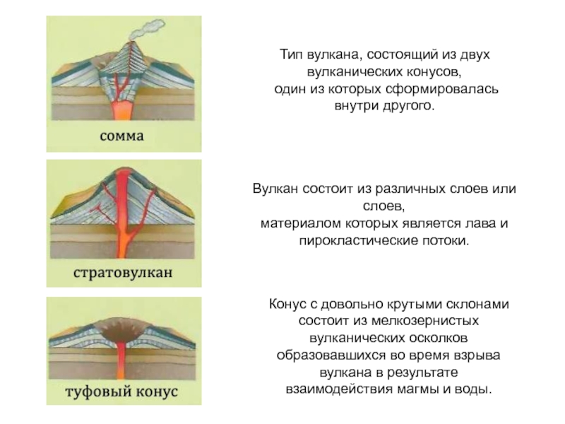 Вулкан состоит из различных слоев или слоев,