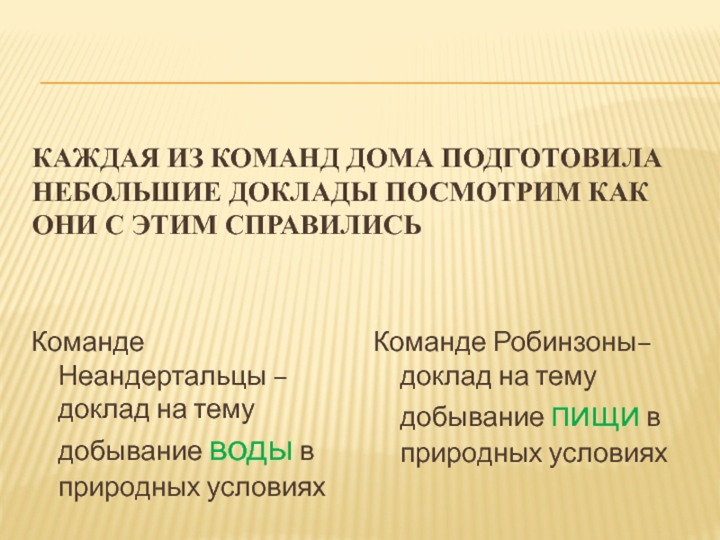 Команде Неандертальцы – доклад на тему добывание воды в природных условиях