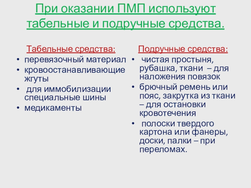 брючный ремень или пояс, закрутка из ткани – для остановки кровотечения