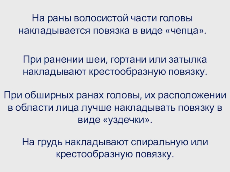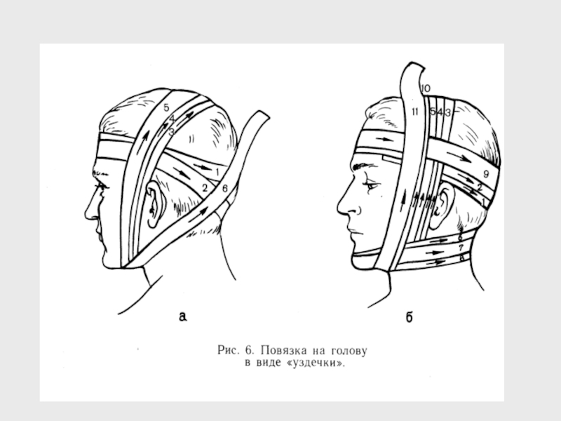При обширных ранах головы, их расположении в области лица лучше накладывать повязку в виде «уздечки».