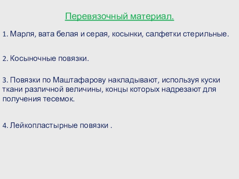 3. Повязки по Маштафарову накладывают, используя куски ткани различной величины, концы которых надрезают для получения тесемок.