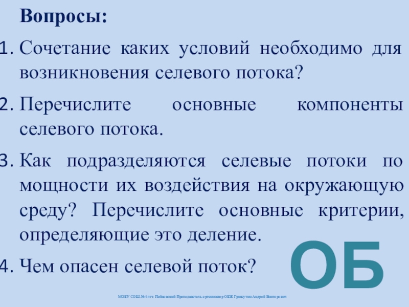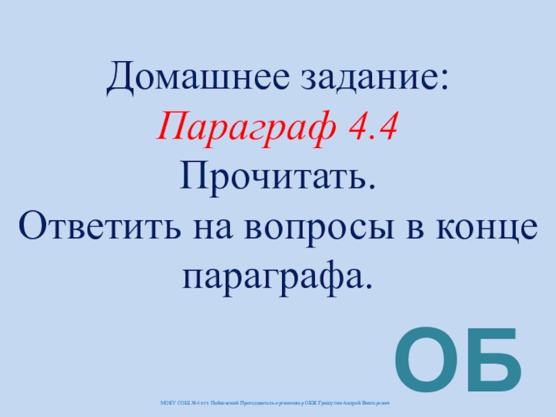 Слайд 13МОБУ СОШ №4 пгт. Пойковский Преподаватель-организатор ОБЖ Гришутин Андрей Викторович