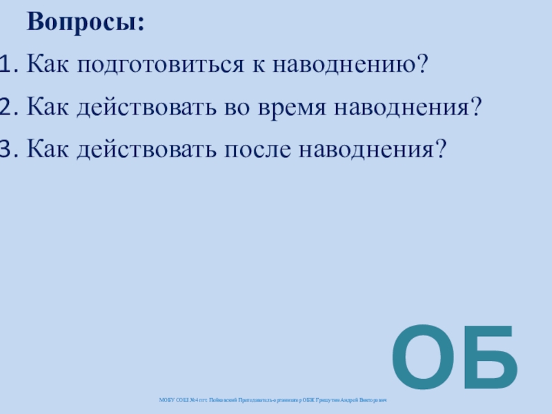 Слайд 7МОБУ СОШ №4 пгт. Пойковский Преподаватель-организатор ОБЖ Гришутин Андрей Викторович