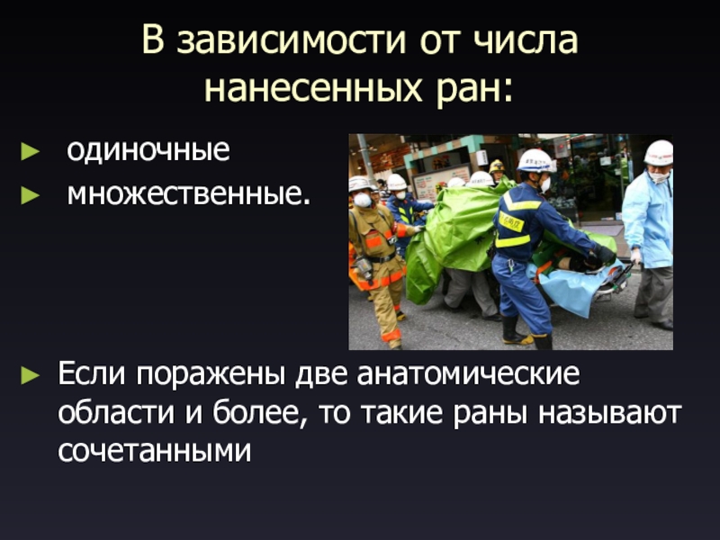 Слайд 6В зависимости от числа нанесенных ран: