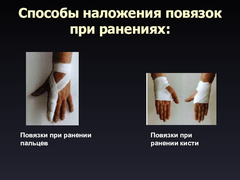 Способы наложения повязок при ранениях: Повязки при ранении пальцев Повязки при ранении кисти