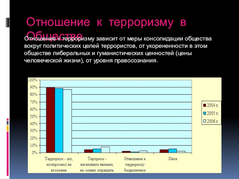 Слайд 23Отношение к терроризму в Обществе