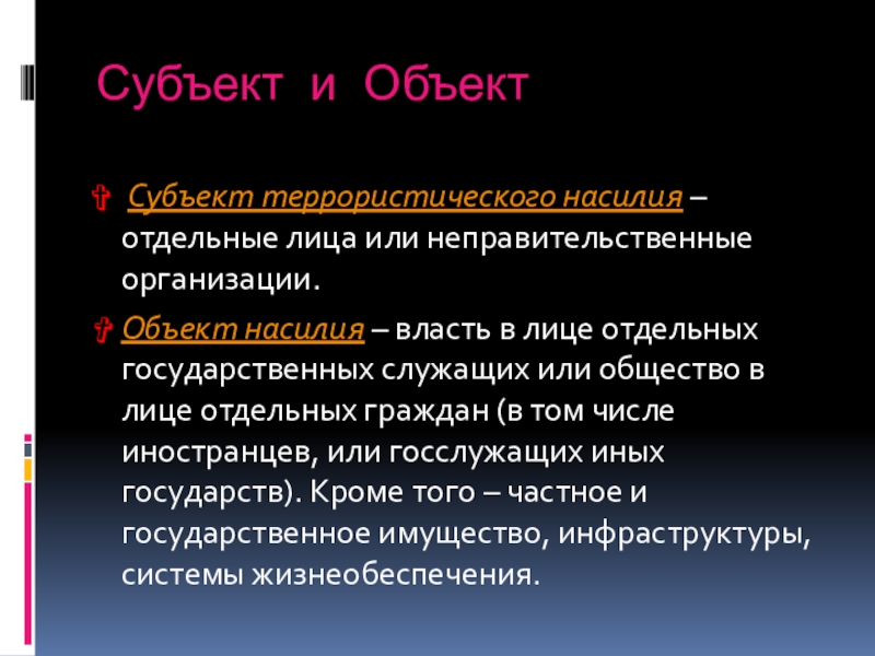 Субъект террористического насилия – отдельные лица или неправительственные
