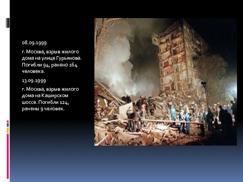 г. Москва, взрыв жилого дома на Каширском шоссе. Погибли 124, ранены 9 человек.