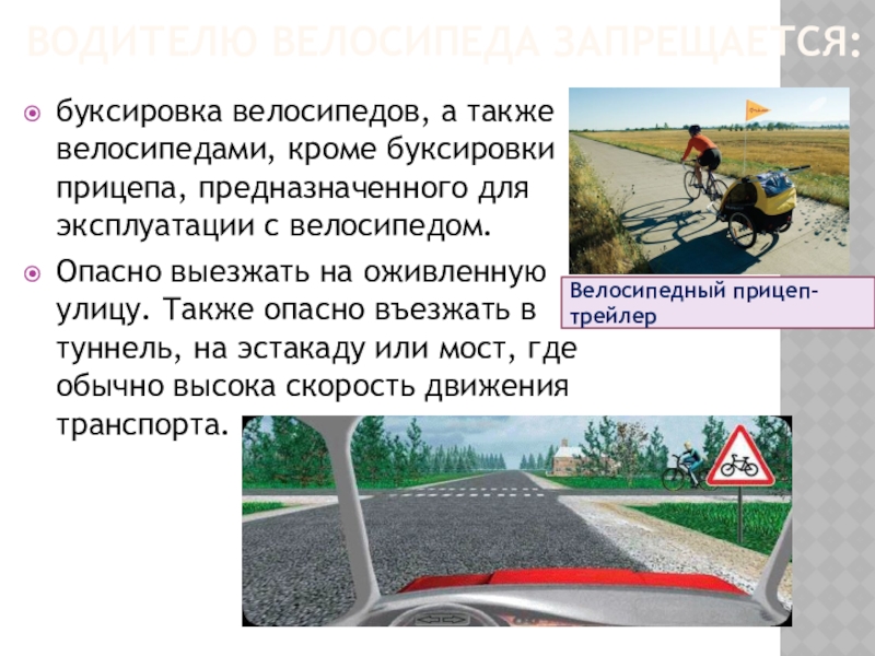 буксировка велосипедов, а также велосипедами, кроме буксировки прицепа, предназначенного