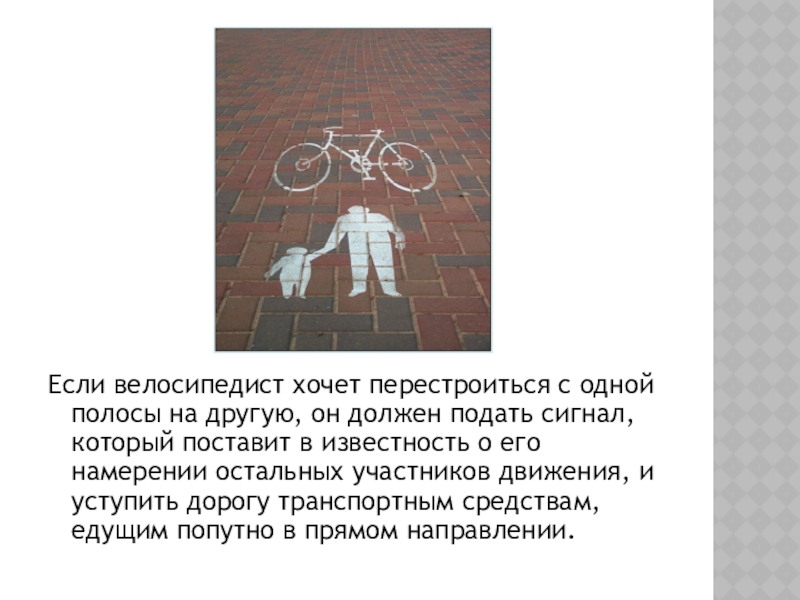 Слайд 16Если велосипедист хочет перестроиться с одной полосы на другую, он должен