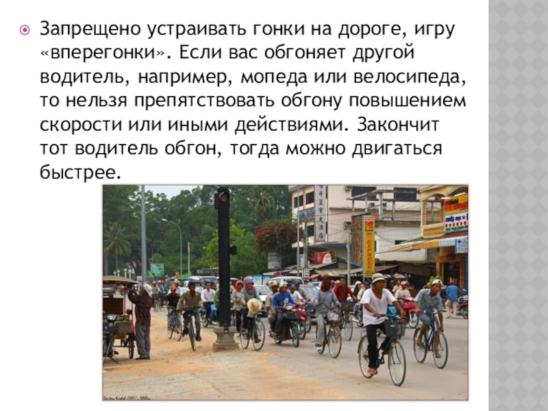 Слайд 18Запрещено устраивать гонки на дороге, игру «вперегонки». Если вас обгоняет другой