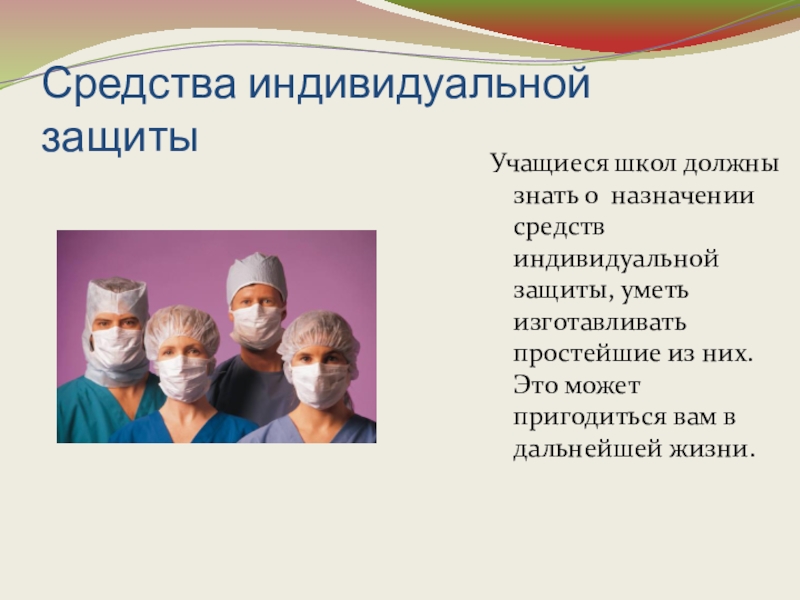 Учащиеся школ должны знать о назначении средств индивидуальной защиты,