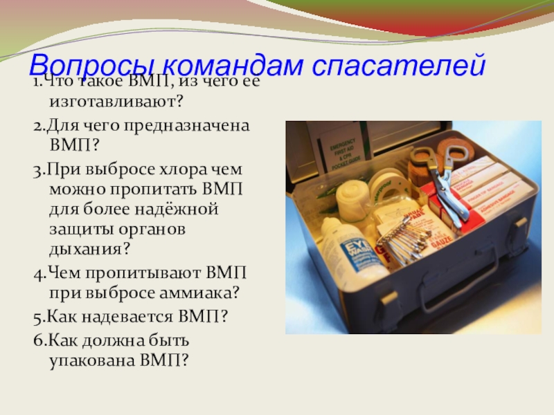 3.При выбросе хлора чем можно пропитать ВМП для более надёжной защиты органов дыхания?