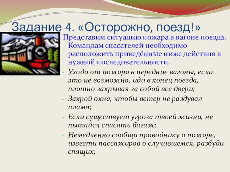 Слайд 15Задание 4. «Осторожно, поезд!»