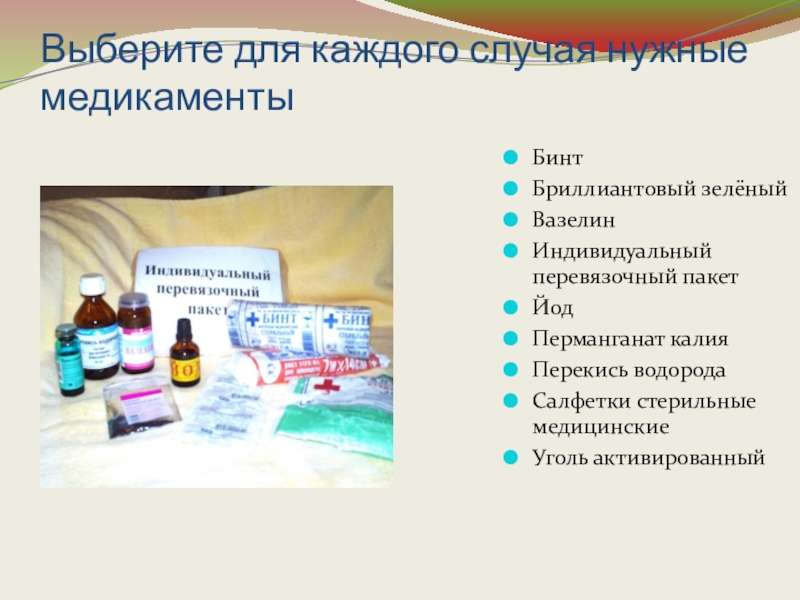 Слайд 12Выберите для каждого случая нужные медикаменты