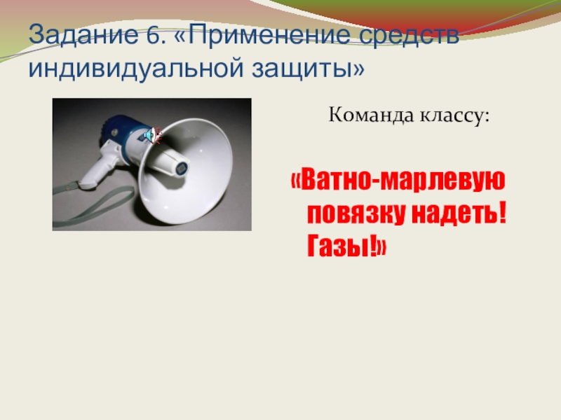 Слайд 24Задание 6. «Применение средств индивидуальной защиты»