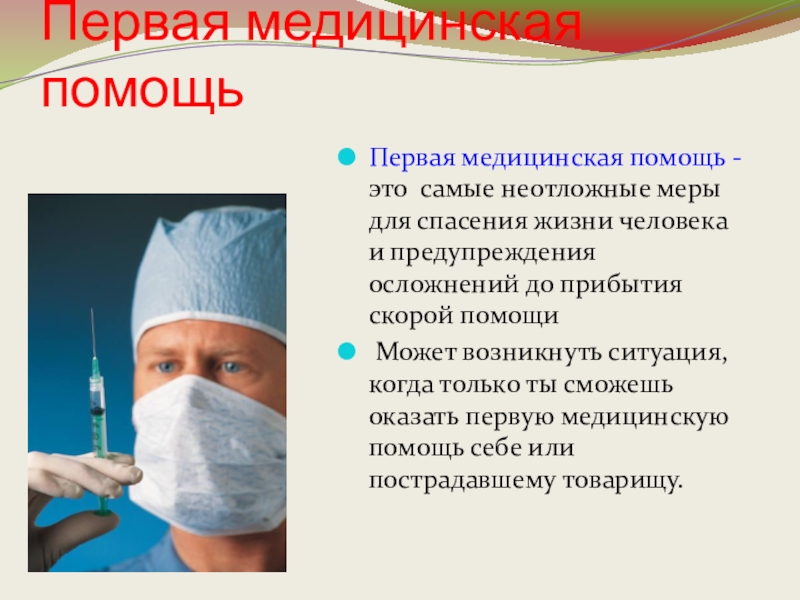 спасения жизни человека и предупреждения осложнений до прибытия скорой помощи