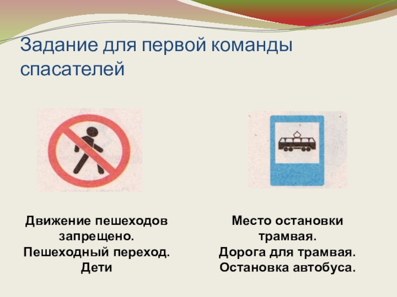 Задание командам спасателей: у вас имеются названия знаков. Выберите правильное название.