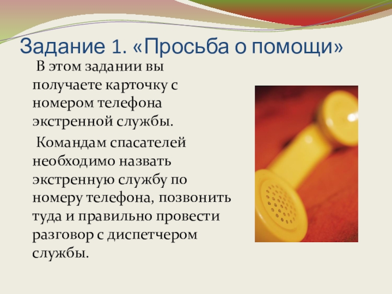 Командам спасателей необходимо назвать экстренную службу по номеру телефона, позвонить туда и правильно провести разговор с диспетчером службы.