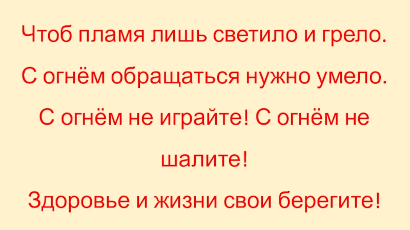 Если горит твоя одежда, надо упасть на пол и кататься сбивая пламя