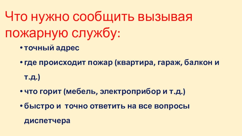 Слайд 39Что нужно сообщить вызывая пожарную службу: