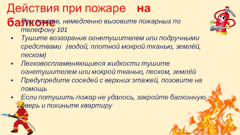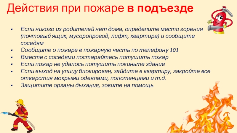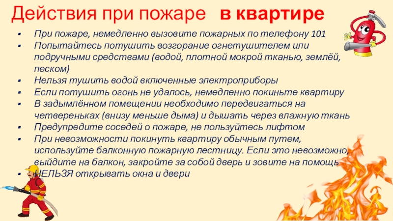 Если огонь сразу не погас, немедленно убегай из дома в безопасное место, вызывай пожарную службу 101