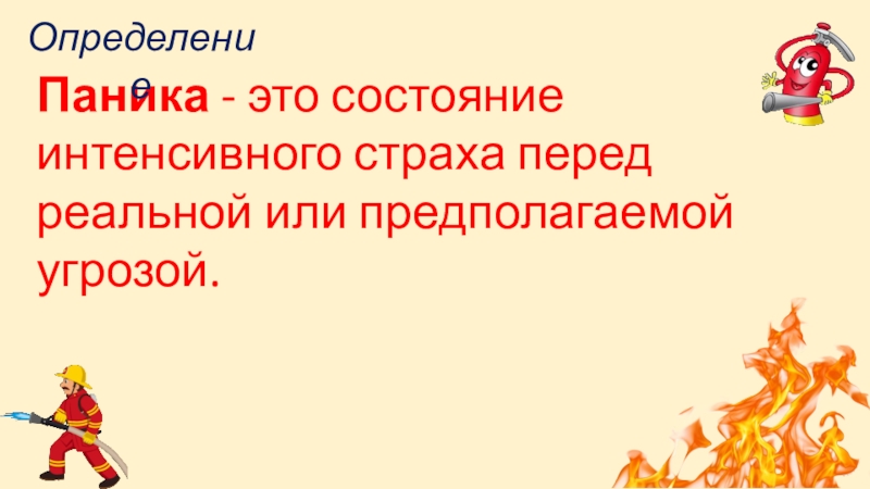 Слайд 27Паника - это состояние интенсивного страха перед реальной или предполагаемой угрозой.