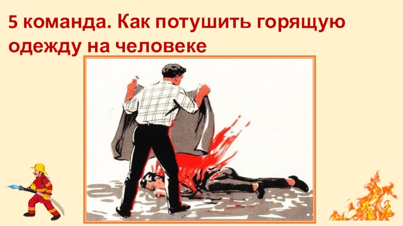 Слайд 225 команда. Как потушить горящую одежду на человеке