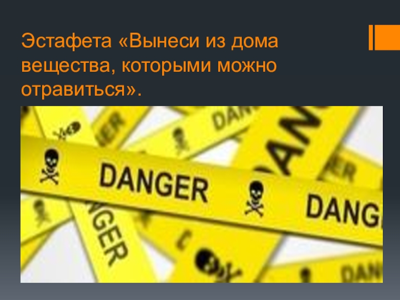 Слайд 4 Эстафета «Вынеси из дома вещества, которыми можно отравиться».