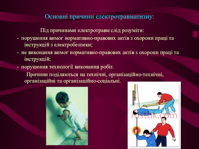 Слайд 4Основні причини електротравматизиу: