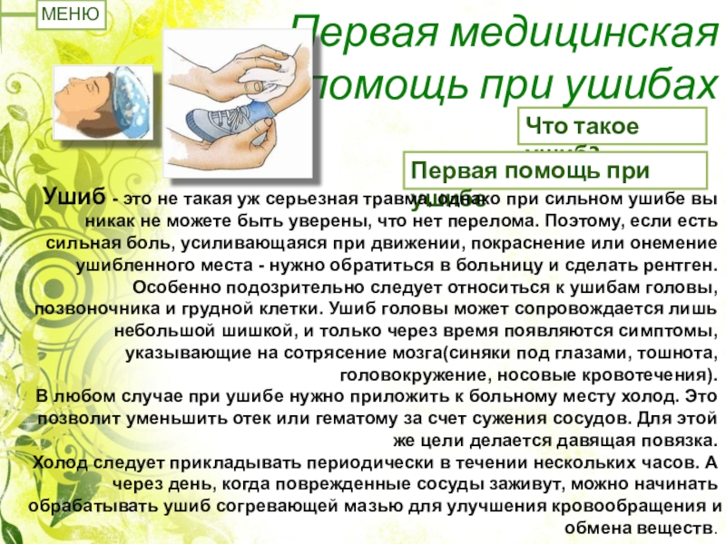 Чтобы облегчить состояние пострадавшего, можно приложить к больному месту холод, чтобы уменьшить отек, а также дать ему анальгин, темпальгин, амидопирин или другое болеутоляющее. Можно дать больному попить воды или теплого чая, накрыть его (если холодно).