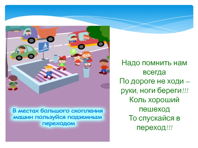 Перейти дорогу можно лишь когда зелёный свет. Загорится объясняя – все иди, машин тут нет!