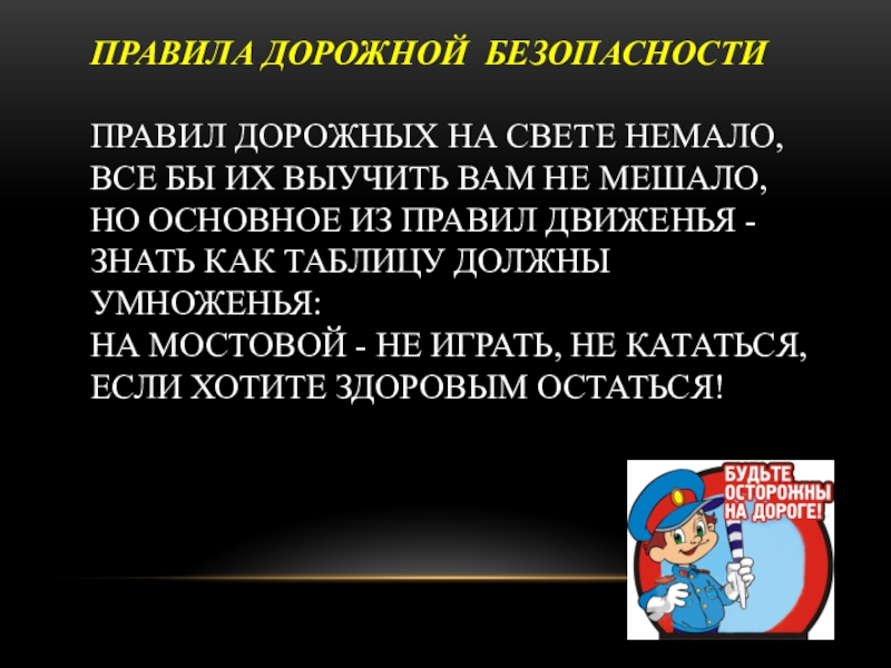 Слайд 12ПРАВИЛА ДОРОЖНОЙ БЕЗОПАСНОСТИ