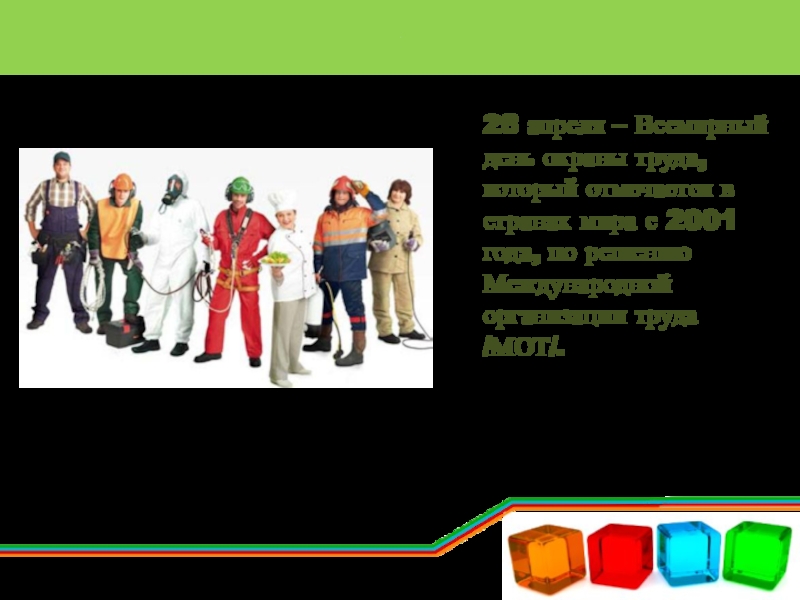 По оценкам Международной организации труда ежегодно в результате несчастных случаев на производстве и профессиональных заболеваний в мире умирает два миллиона человек, то есть около шести тысяч рабочих ежедневно, причем количество погибших ежегодно возрастает на 10 %. Еще 270 миллионов становятся жертвами несчастных случаев на производстве. Ежегодно регистрируется 160 миллионов человек, страдающих профзаболеваниями.