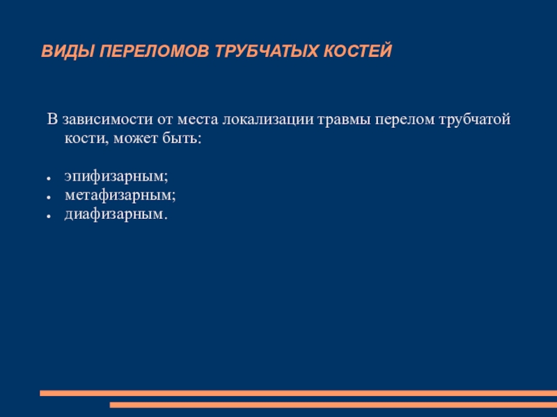 Слайд 6ВИДЫ ПЕРЕЛОМОВ ТРУБЧАТЫХ КОСТЕЙ