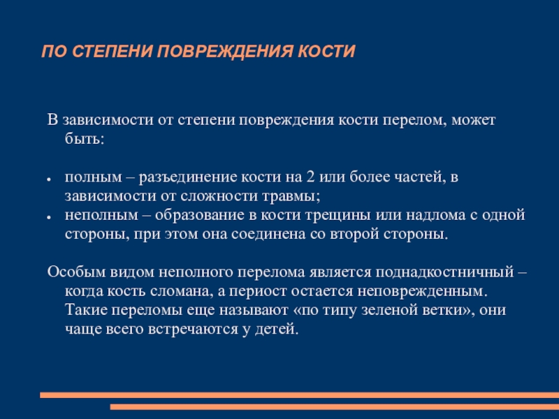 Слайд 7ПО СТЕПЕНИ ПОВРЕЖДЕНИЯ КОСТИ