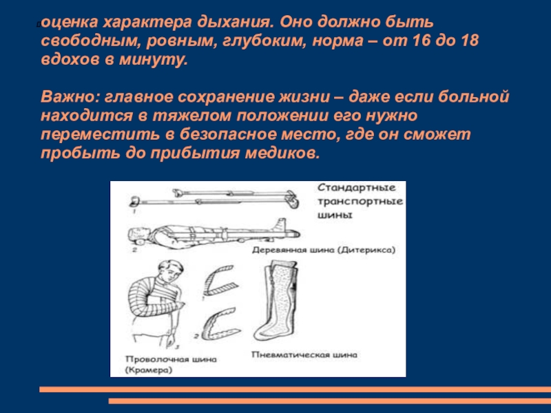 Слайд 13оценка характера дыхания. Оно должно быть свободным, ровным, глубоким, норма –