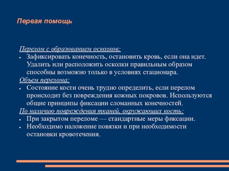 кости, но и кожных покровов. Часто это сопровождается кровотечением. Первая помощь включает в себя следующие действия: