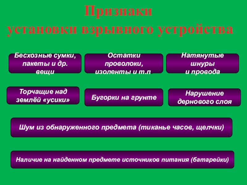 Их особенностью является непредсказуемость прогнозирования момента и порядка срабатывания взрывного устройства, а также мощность взрыва