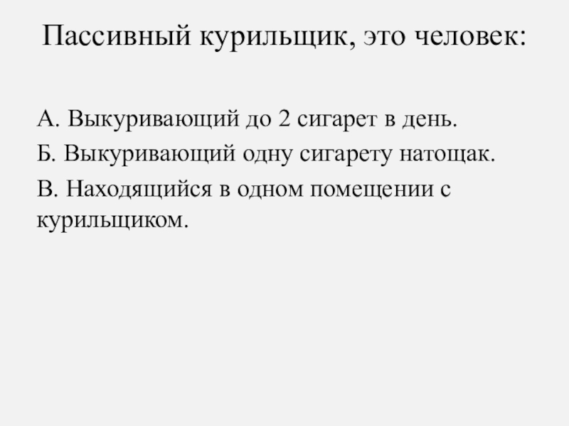 Слайд 68Пассивный курильщик, это человек: