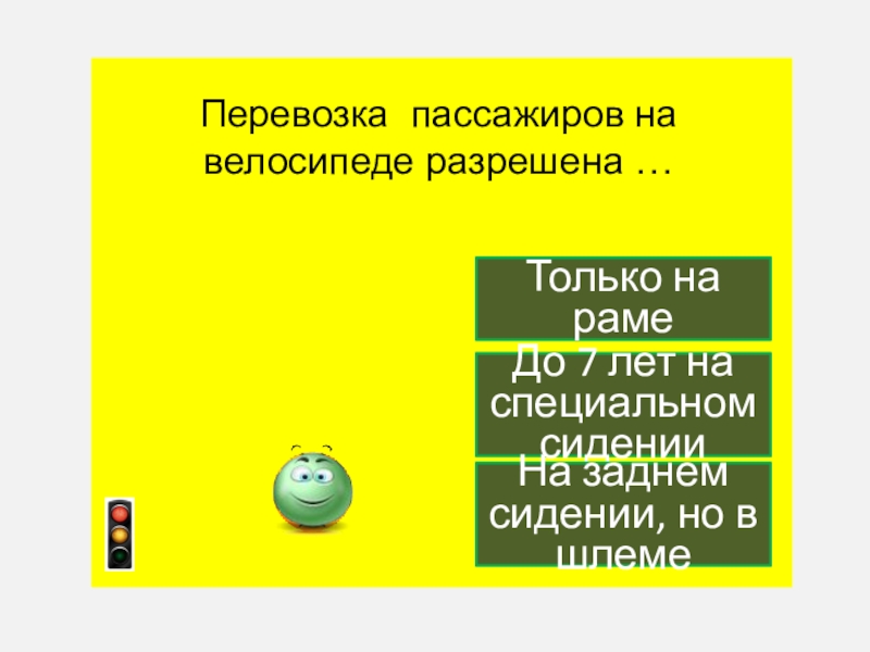 Слайд 36Перевозка пассажиров на велосипеде разрешена …