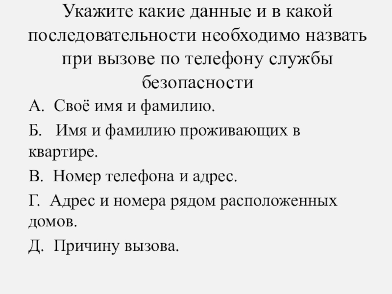 Слайд 3Укажите какие данные и в какой последовательности необходимо назвать при вызове