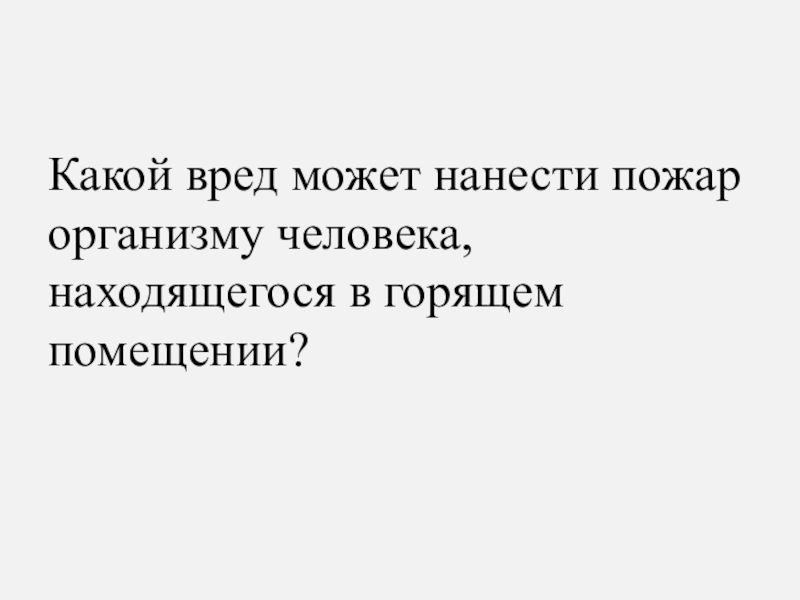 Слайд 7Какой вред может нанести пожар организму человека, находящегося в горящем помещении?