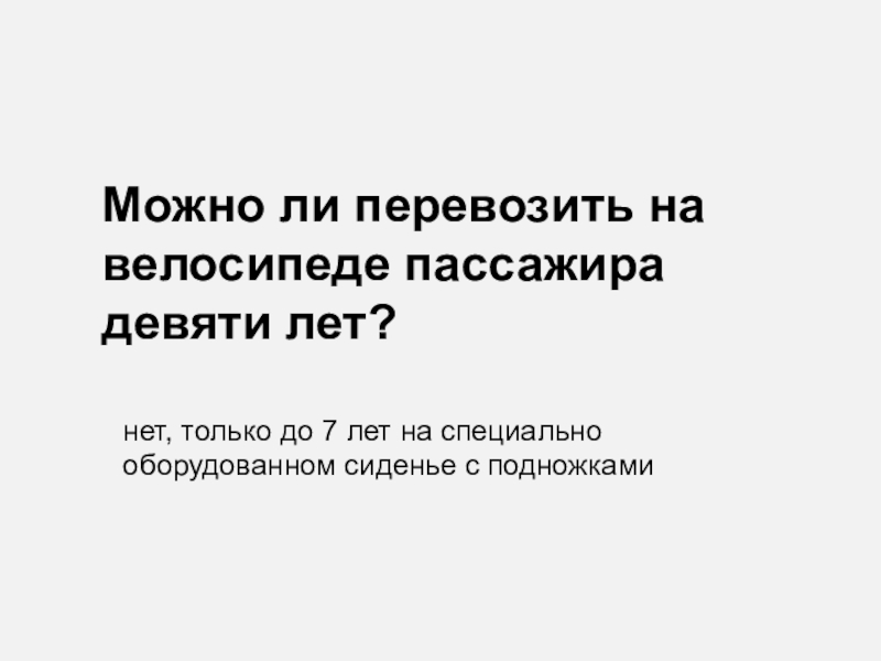 Можно ли перевозить на велосипеде пассажира девяти лет?